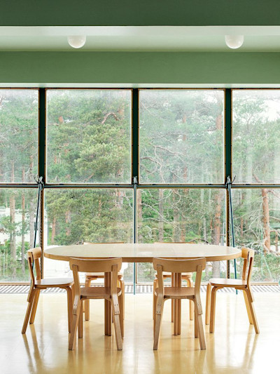 Alvar Aalto was behind all the details of the Paimio Sanatorium and designed everything from the building and the door handles to the lighting and chairs. With his wife Aino, he designed the famous Paimio chairs (still in production at Artek) with the patient in mind. The chairs were designed at a certain angle and made to recline slightly opening the sitter’s chest to increase air supply to diseased lungs—an embodiment of the modernist dictum that “form follows function.” Even Aalto’s choice of material was deliberate: the use of bent laminated wood makes the chair easy to clean and disinfect, as well as extremely light to carry and move - the chair was comfortable and hygienic, but it didn’t look like a sterile hospital chair.