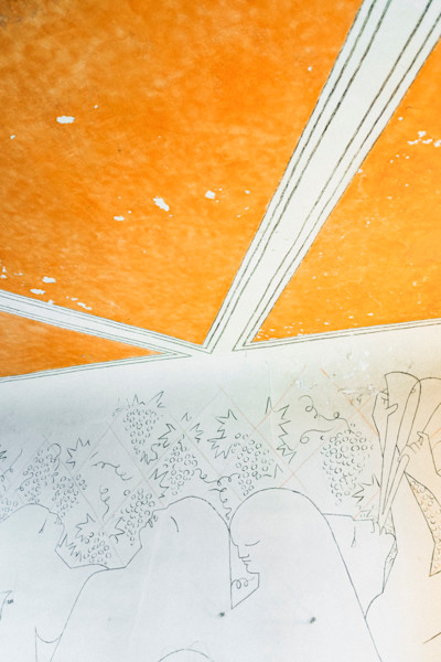All summer in 1950, Jean Cocteau worked on ladders without any preliminary model. After drawing in charcoal, the poet enhanced his drawings with coloured powders diluted in raw milk, otherwise known as frescoes in tempera. Cocteau would write: “I didn’t have to dress the walls; I had to paint on their skin [...] Santo Sospir is a tattooed villa”.