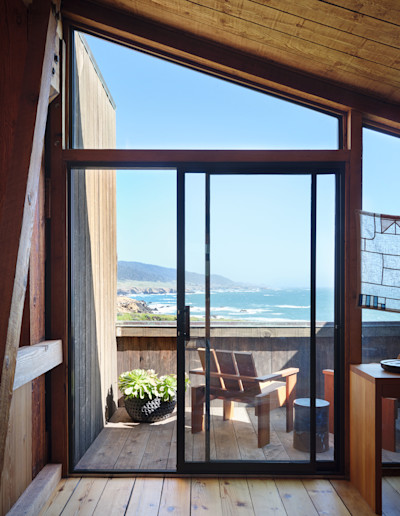 For most of its existence, the 5,000 acres that now comprise the Sea Ranch were completely forested with old stands of redwoods, Bishop pine, and fir. By the end of the nineteenth century, these forests had been logged to supply San Francisco. The cove where Condominium One now sits, known as Black Point, was a nexus of forest and sea: loggers dragged timber down to the ocean to be loaded onto steamers, forming a bustling outpost of chutes, barns, and clapboard cabins. Architect William Turnbull Jr. identified these early structures as the logical DNA for the development’s vernacular forms.